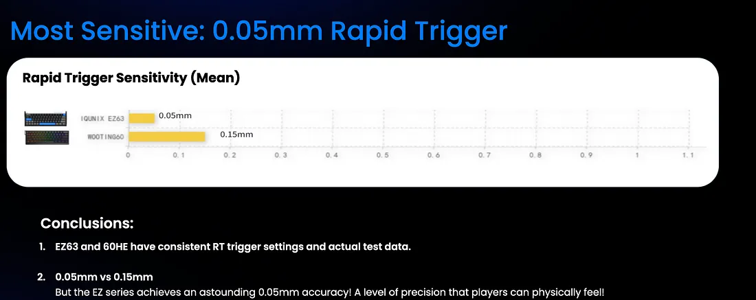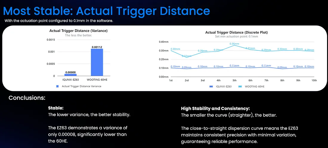 Bottom line? Iqunix EZ63 really excels in latency and responsiveness, absolute top of the industry.