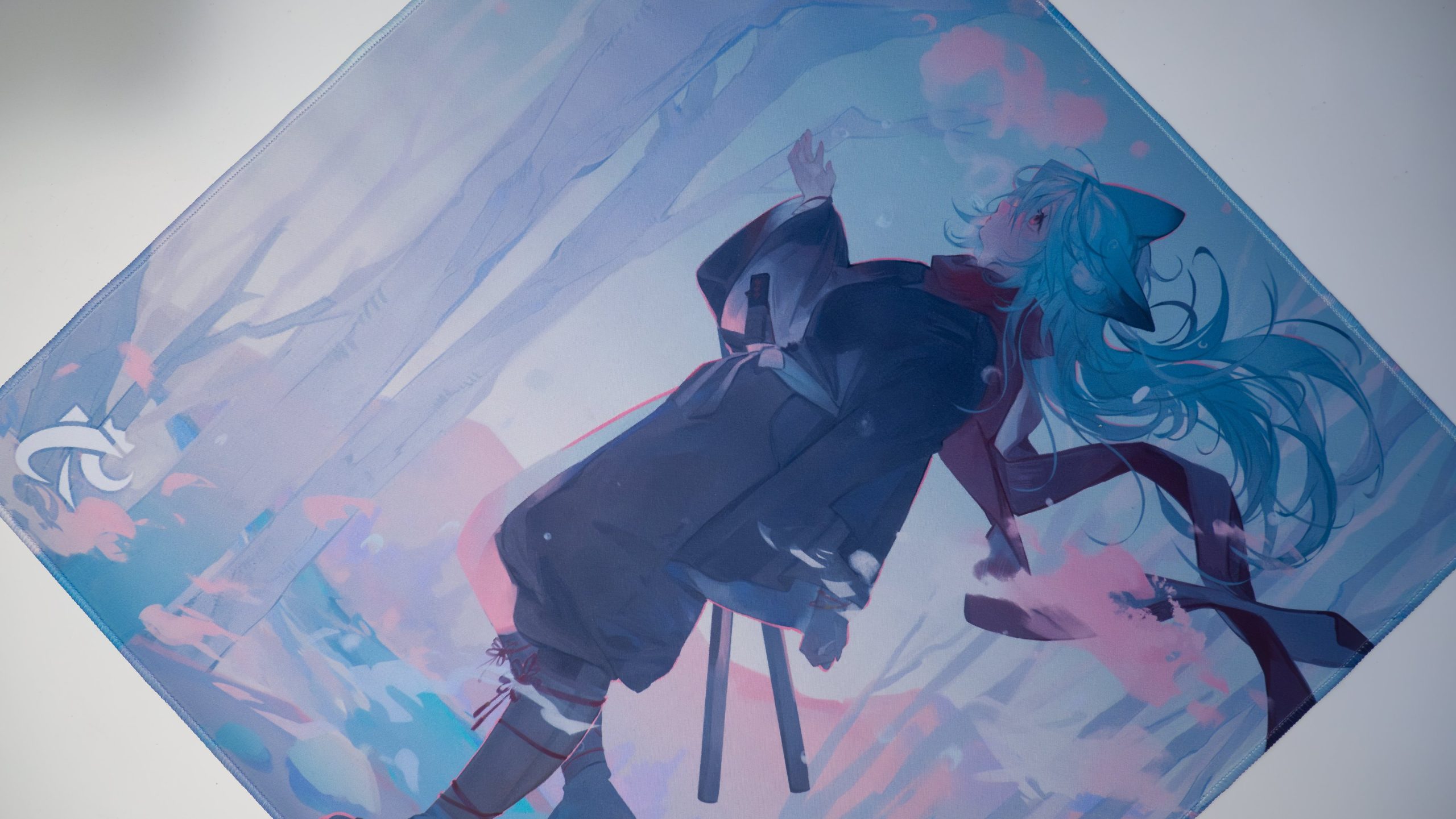 This mousepad comes in the classic 500*500*3mm size, with a very nice anime-style design in cold colours. I enjoyed the artwork on the pad and, although a lot of people in the community have been slandering anime designs on mousepads, I think this one is special because it’s telling its story through the fabric, and it’s not just being thrown on the pad out of the blue. And, spoiler alert, she won’t be the only character we’re gonna see from 9kings.